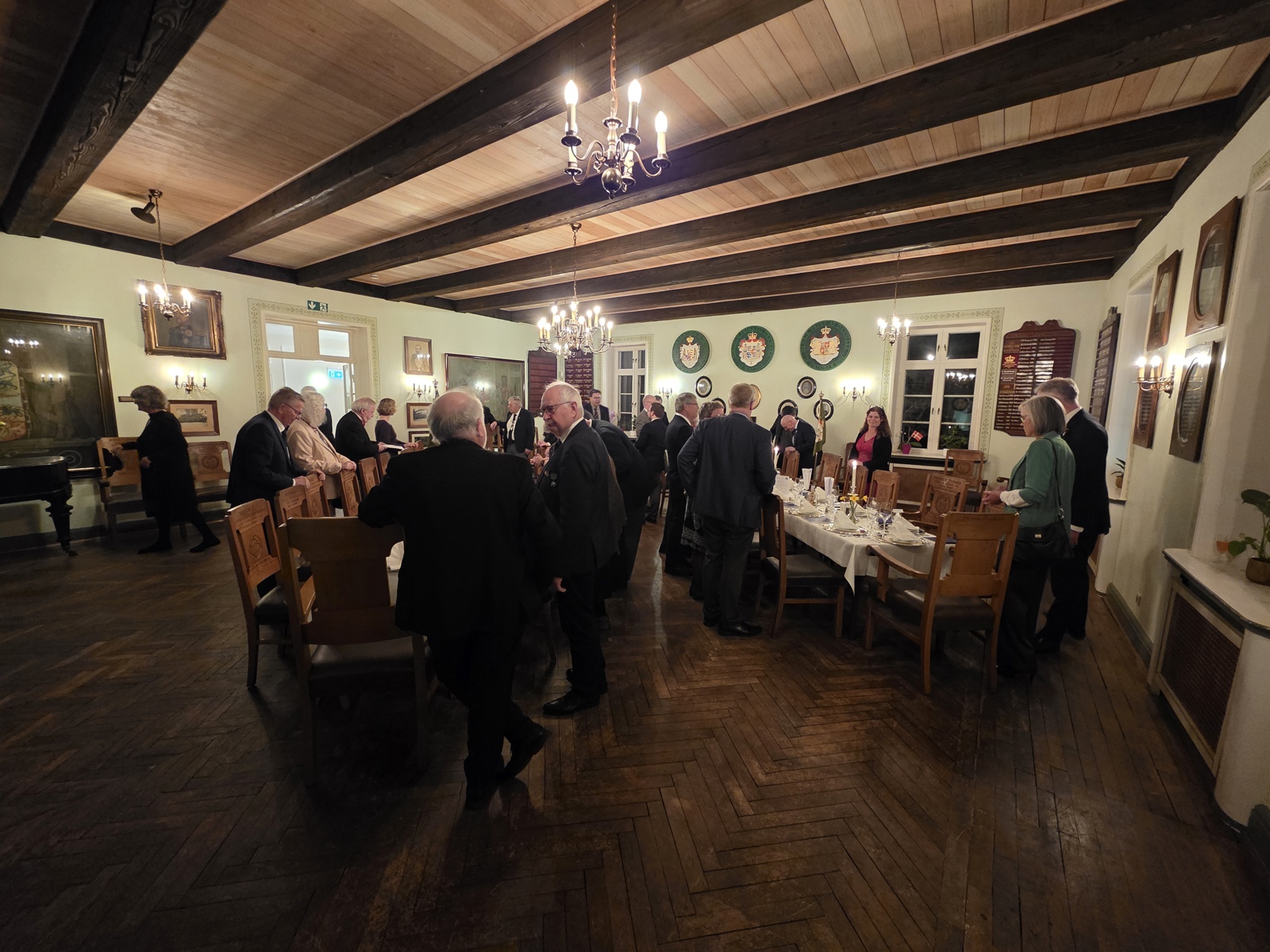 Festklædte og glade brødre, søster og gæster (kommende Knuds Brødre) blev modtaget i Kanslerstuen med en drink, og gik til bordet kl. 19.15.